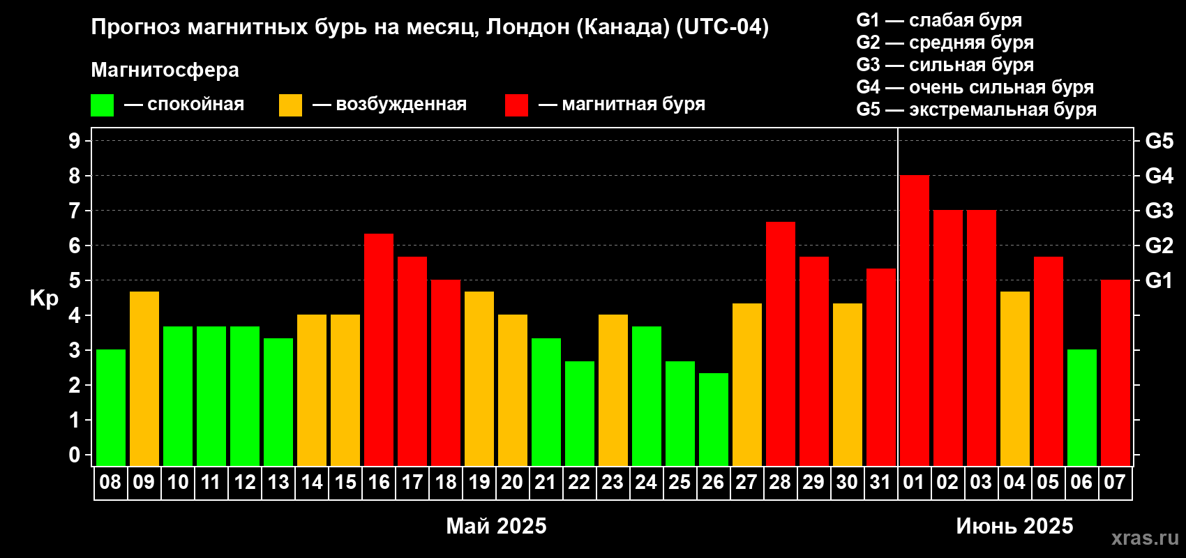 Прогноз магнитных бурь Лондоне (Канада) — 8 мая 2025 года
