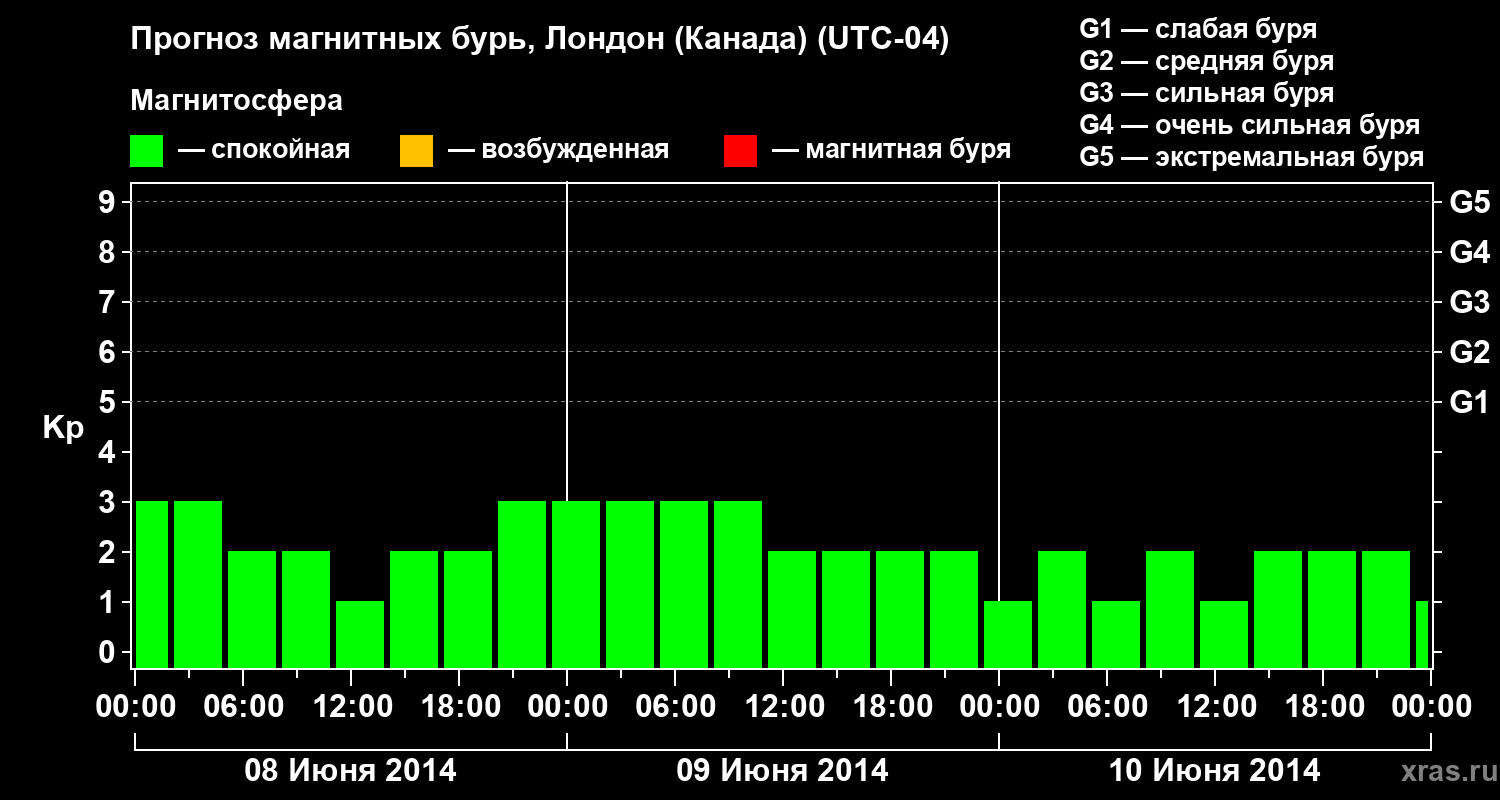 Прогноз магнитных бурь Лондоне (Канада) — 8 июня 2014 года
