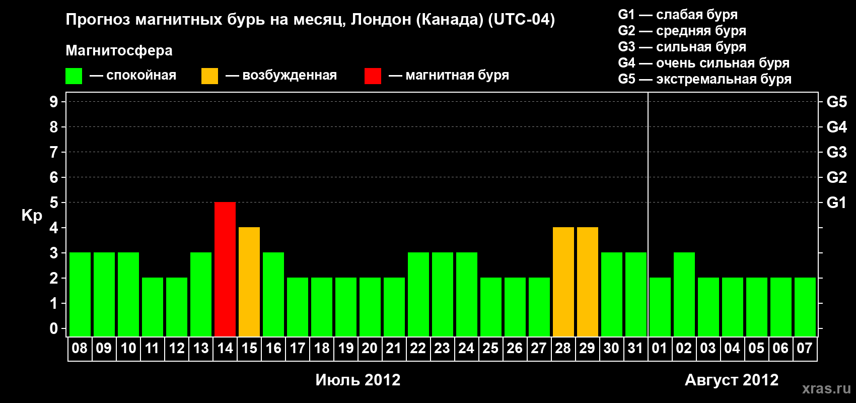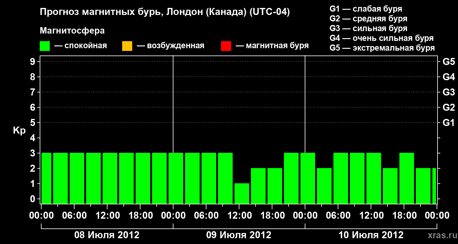 Прогноз магнитных бурь Лондоне (Канада) — 8 июля 2012 года