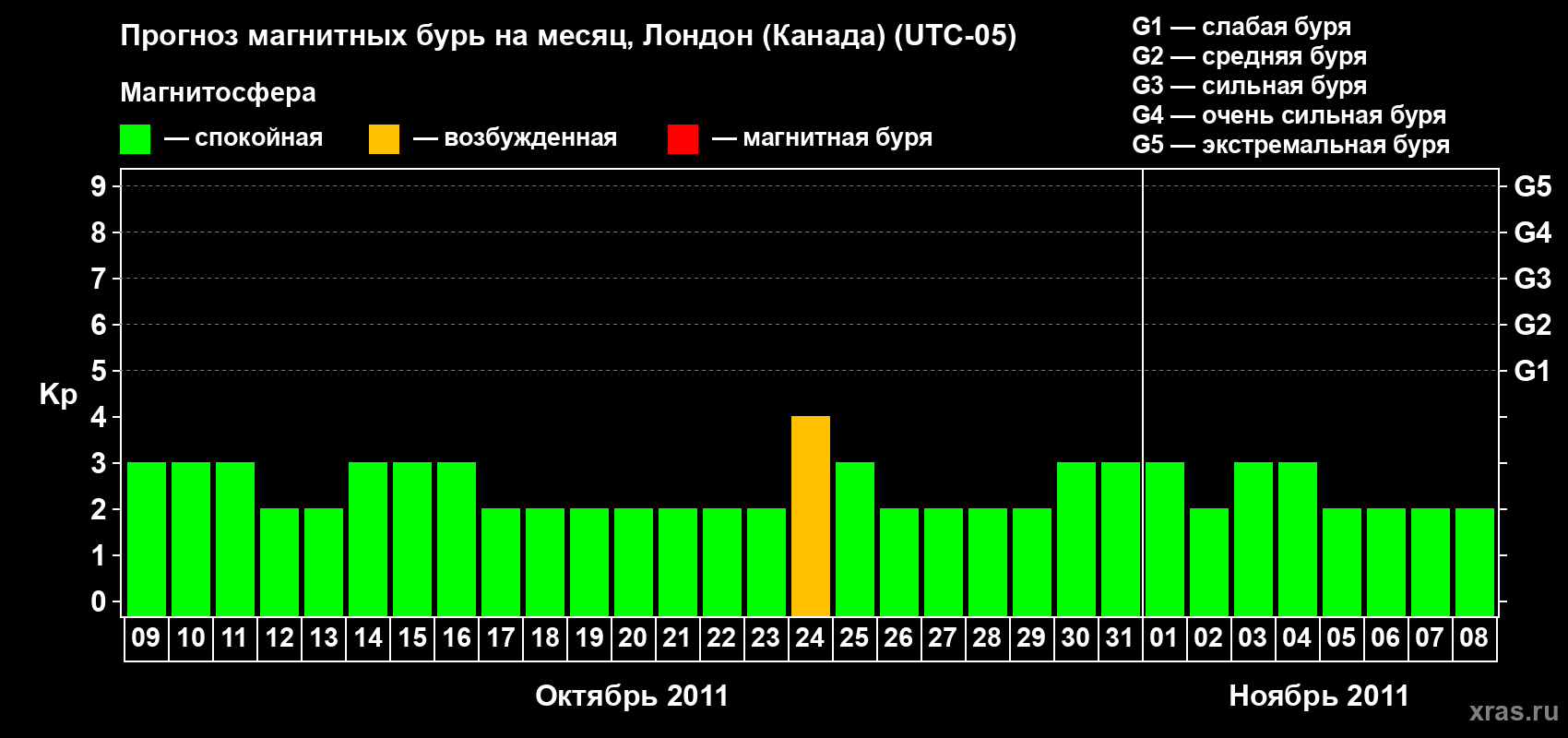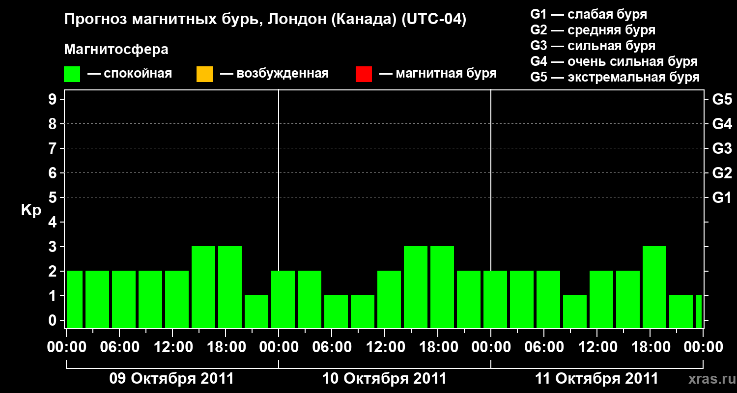 Прогноз магнитных бурь Лондоне (Канада) — 9 октября 2011 года