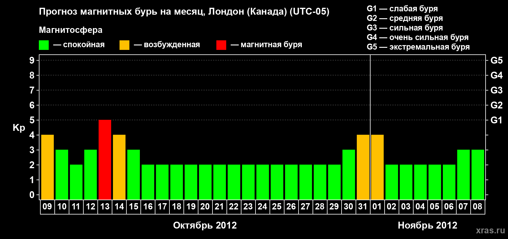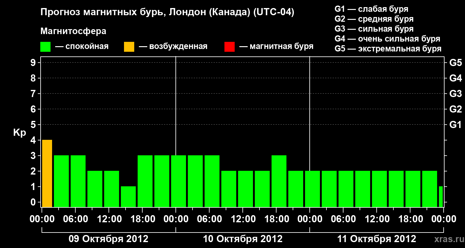 Прогноз магнитных бурь Лондоне (Канада) — 9 октября 2012 года