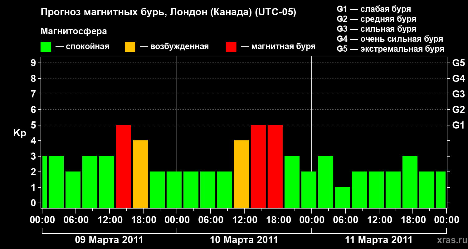 Прогноз магнитных бурь Лондоне (Канада) — 9 марта 2011 года