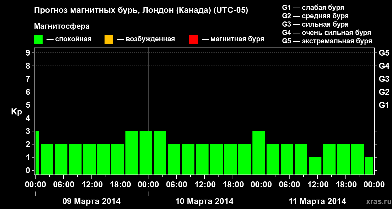 Прогноз магнитных бурь Лондоне (Канада) — 9 марта 2014 года