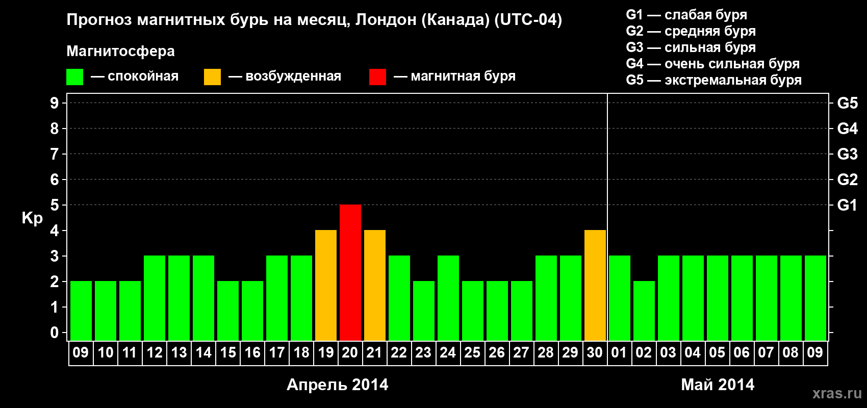 Прогноз магнитных бурь Лондоне (Канада) — 9 апреля 2014 года