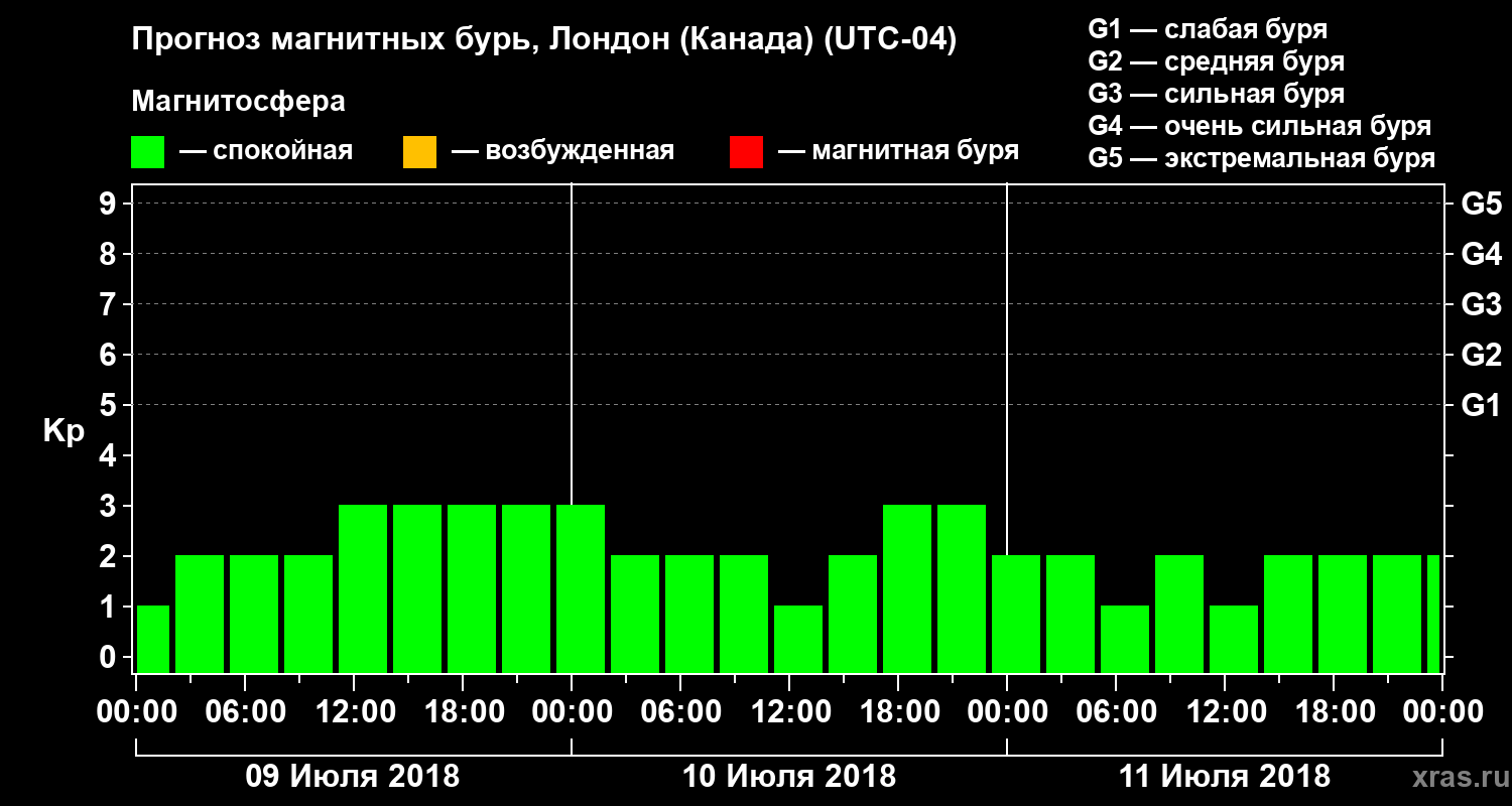Прогноз магнитных бурь Лондоне (Канада) — 9 июля 2018 года
