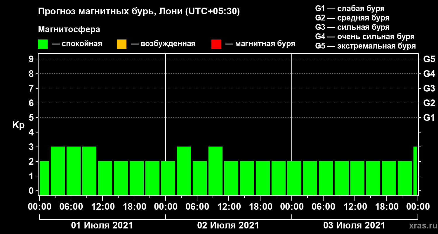 Прогноз магнитных бурь Лони на 1 июля 2021 года