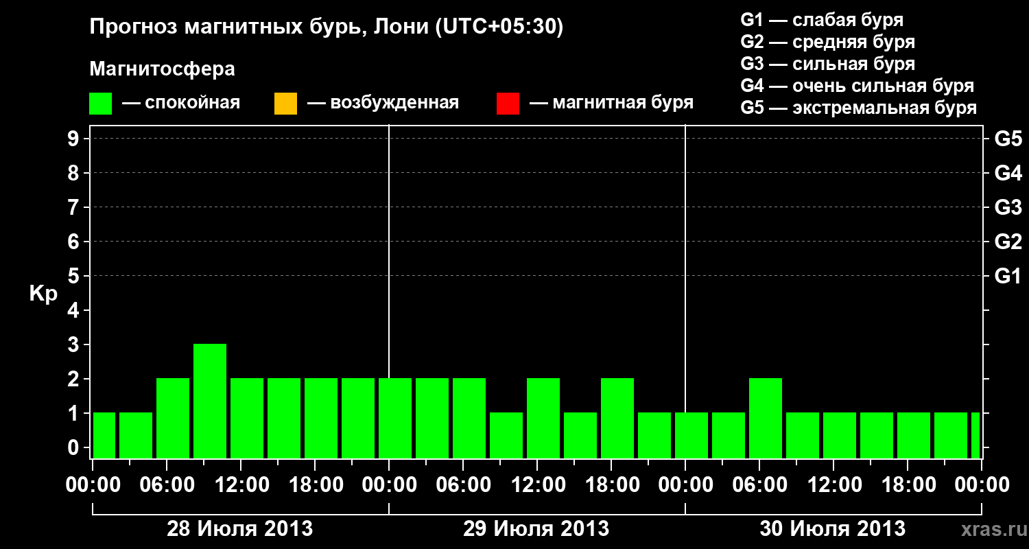 Прогноз магнитных бурь Лони на 28 июля 2013 года