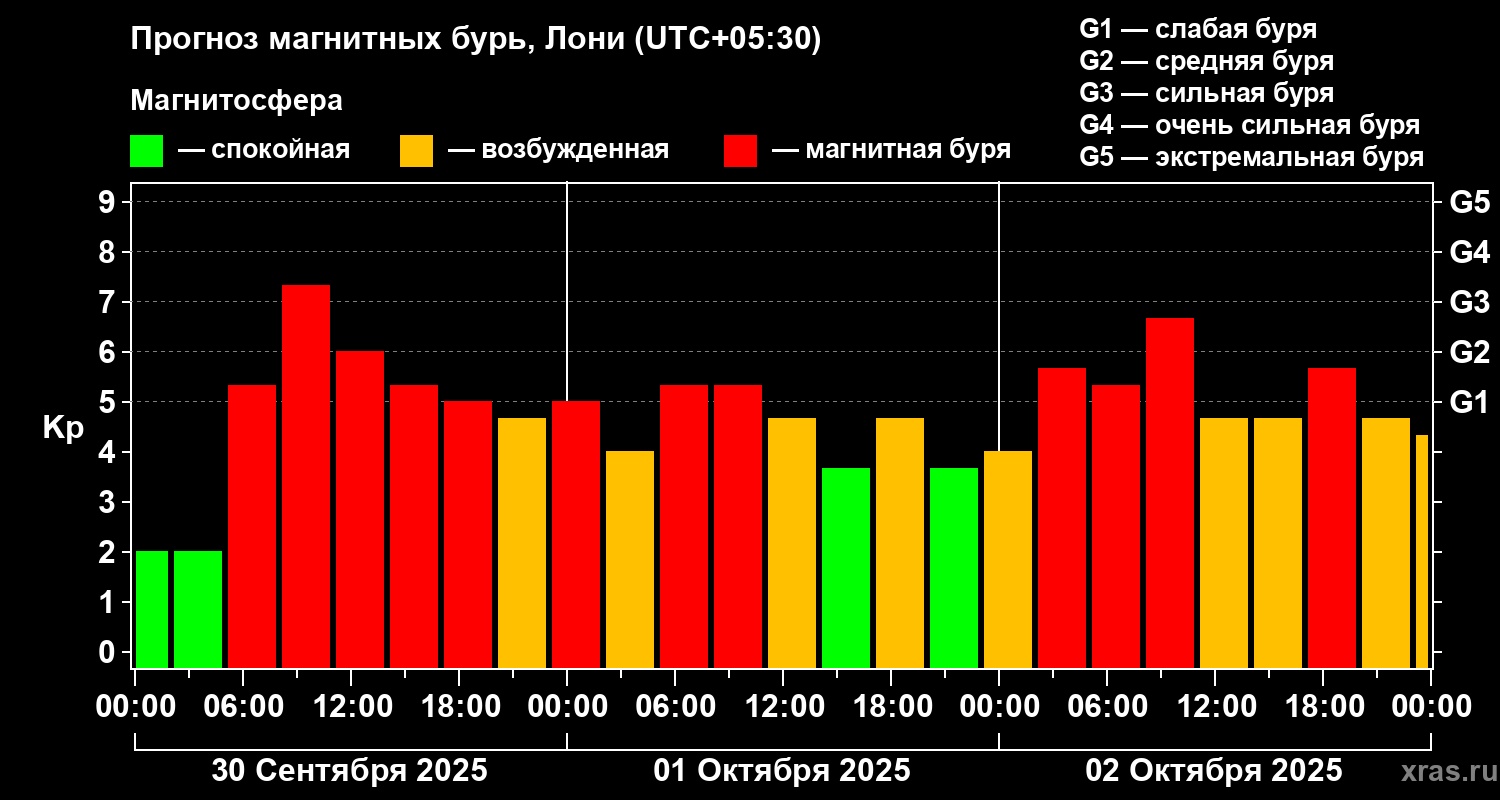 Прогноз магнитных бурь Лони на 30 сентября 2025 года