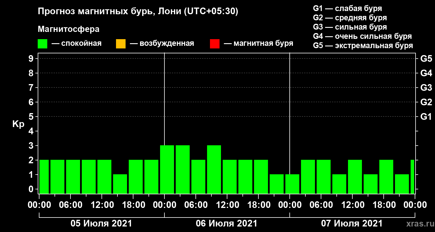 Прогноз магнитных бурь Лони на 5 июля 2021 года