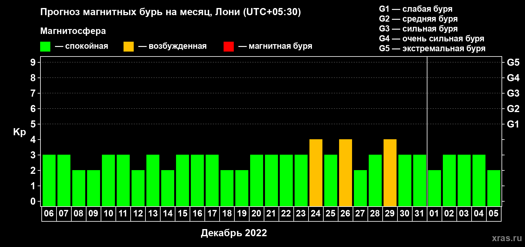 Прогноз магнитных бурь Лони на 6 декабря 2021 года