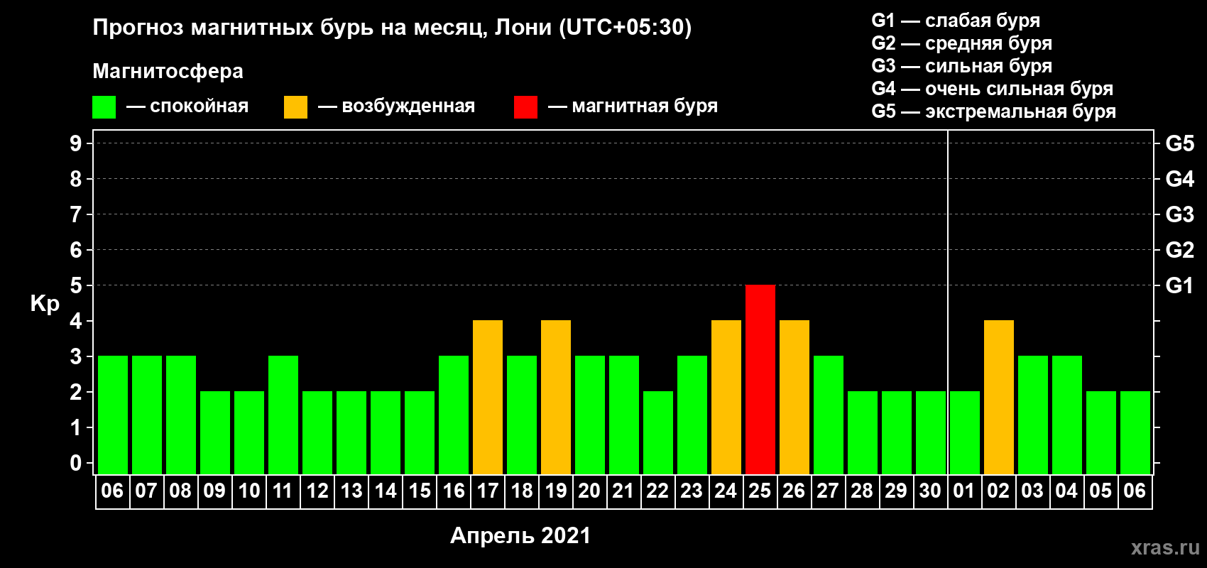 Прогноз магнитных бурь Лони на 6 апреля 2021 года