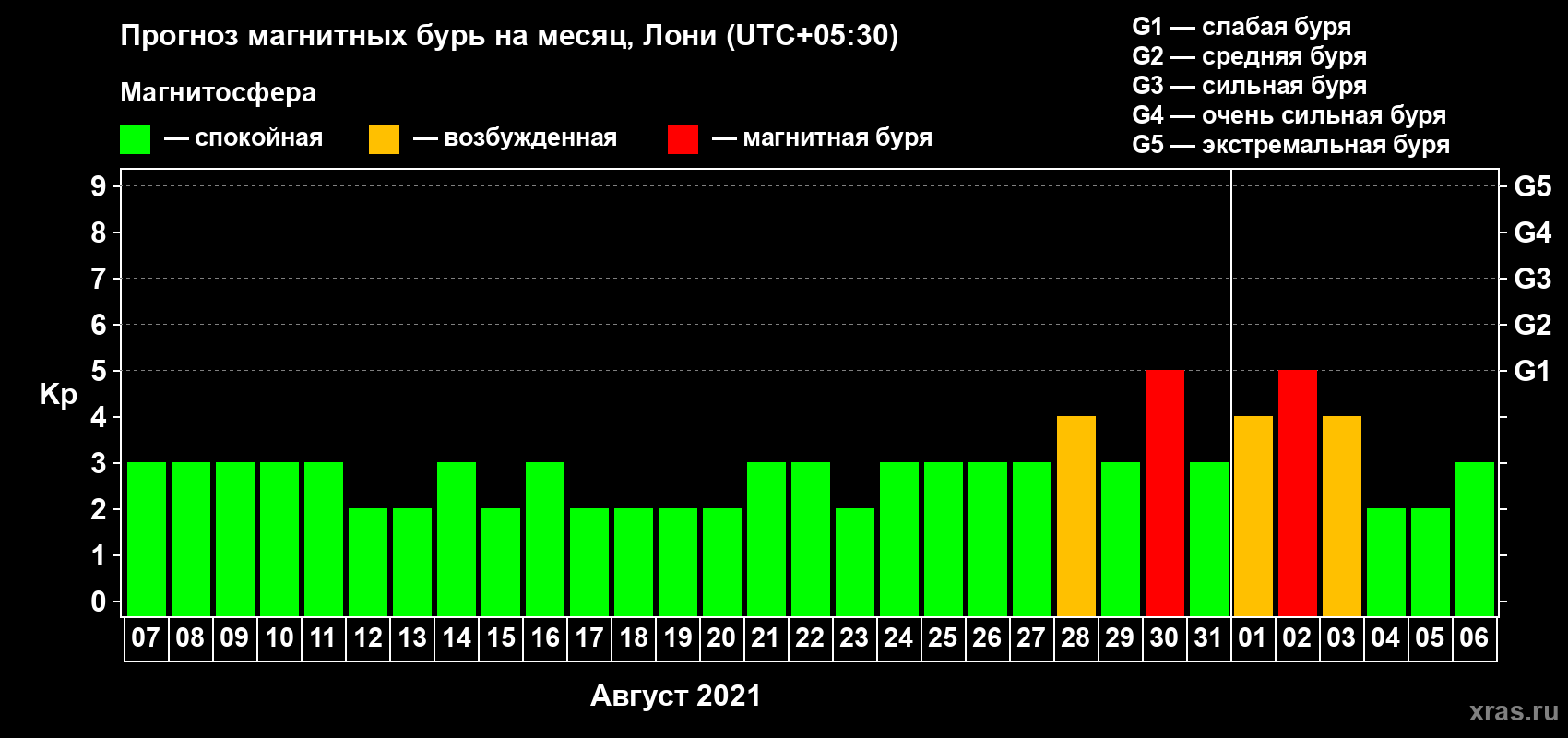 Прогноз магнитных бурь Лони на 7 августа 2021 года