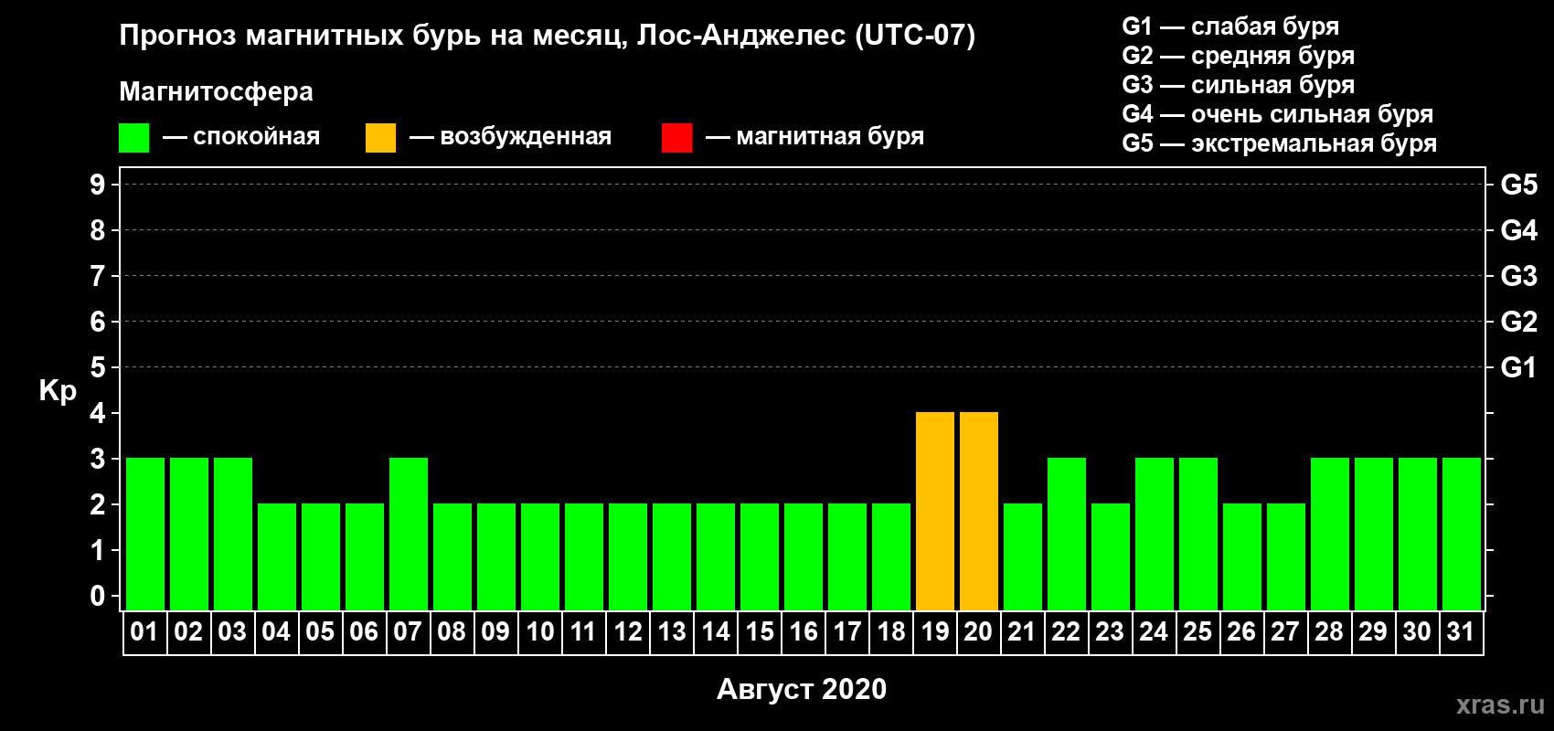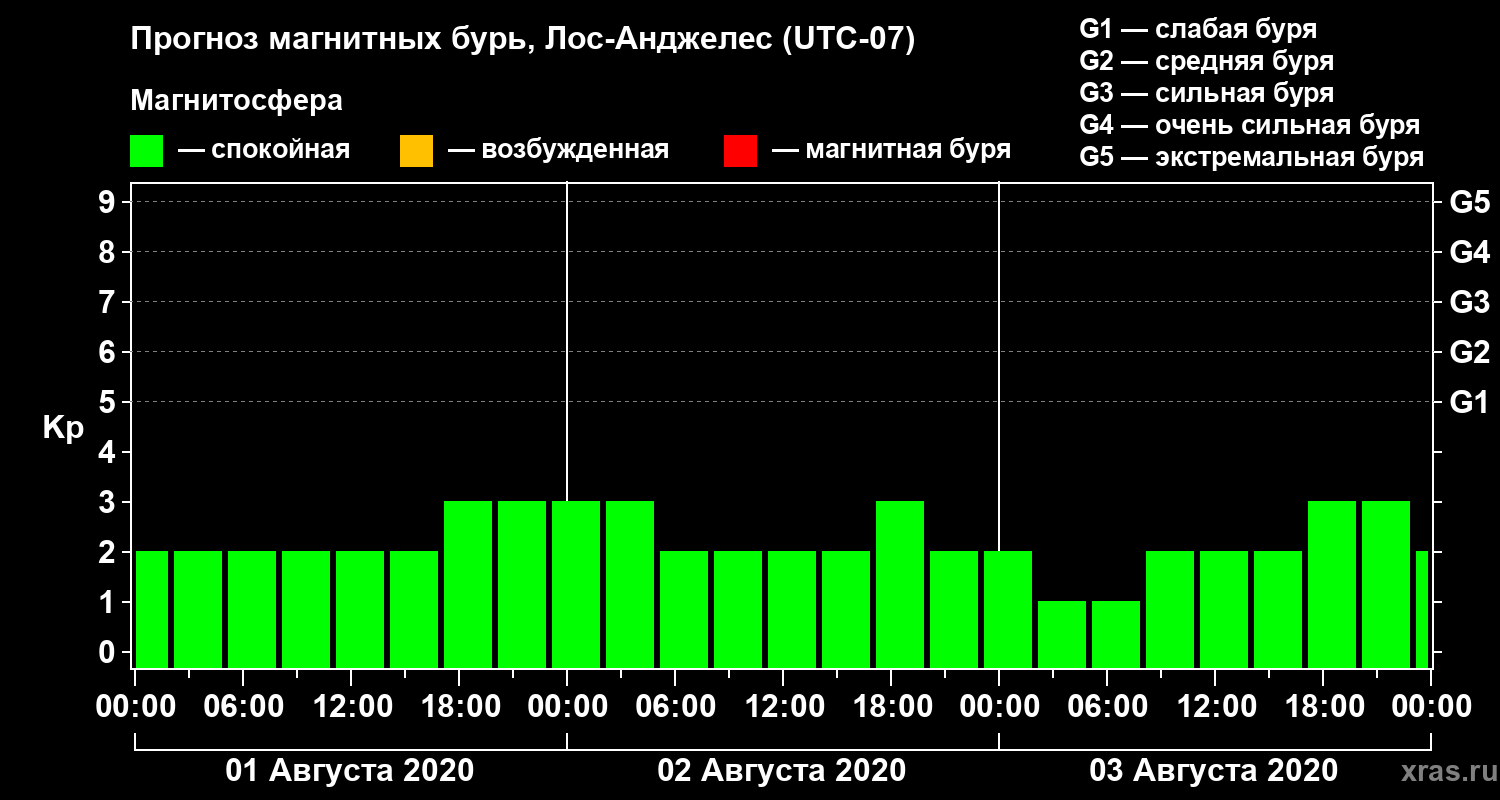 Прогноз магнитных бурь в Лос-Анджелесе — 1 августа 2020 года