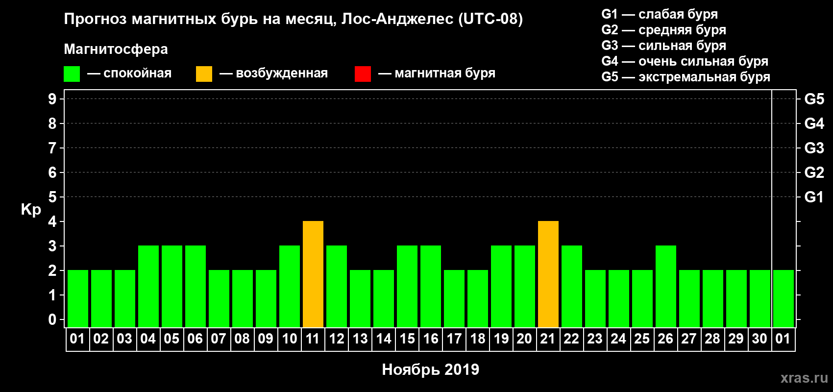 Прогноз магнитных бурь в Лос-Анджелесе — 1 ноября 2019 года