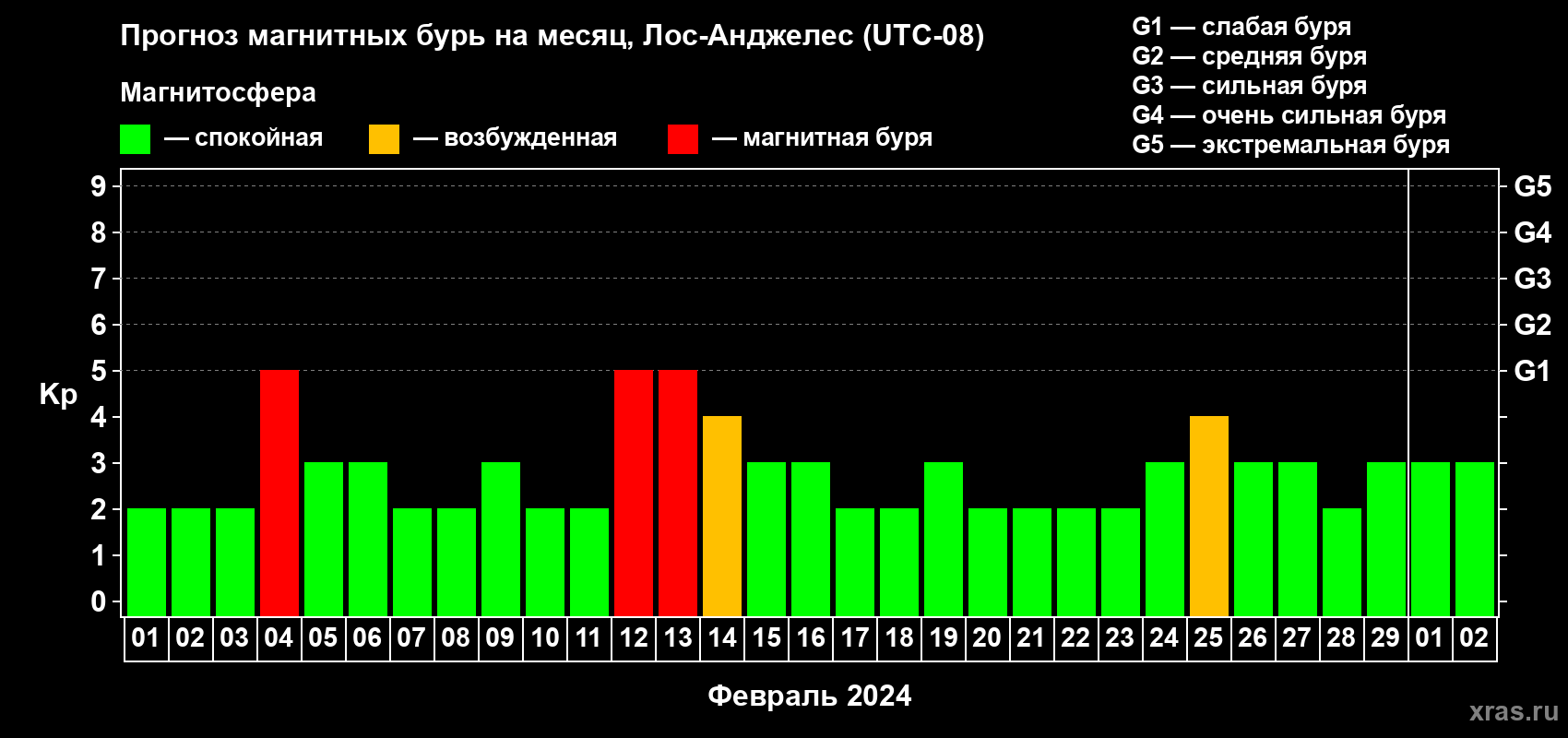 Прогноз магнитных бурь в Лос-Анджелесе — 1 февраля 2024 года