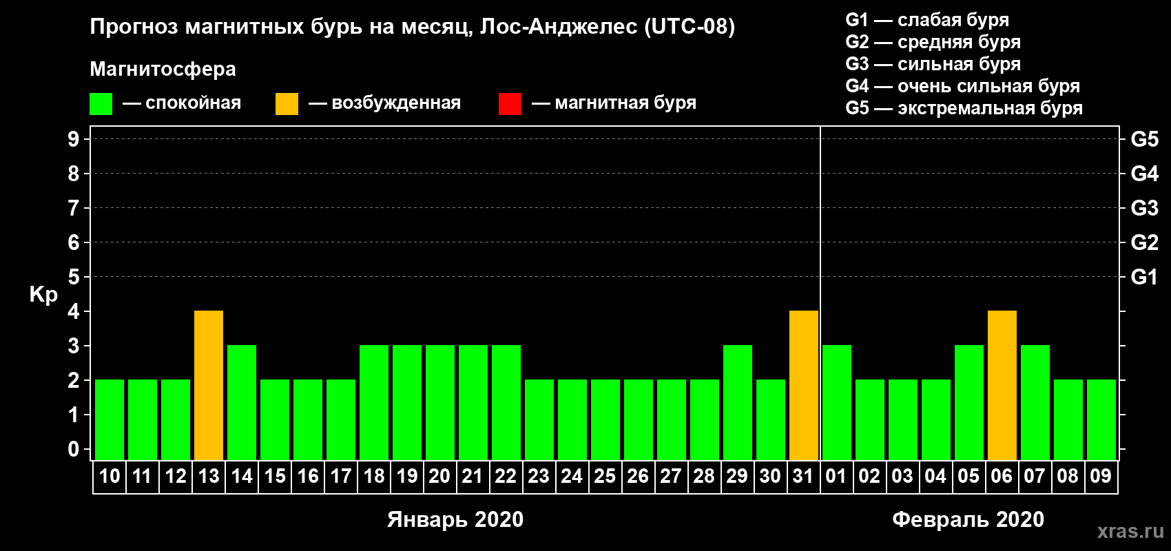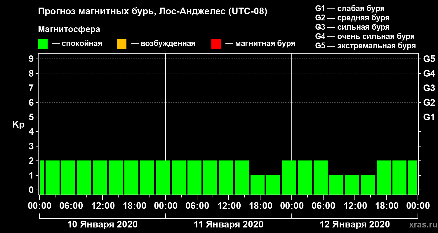 Прогноз магнитных бурь в Лос-Анджелесе — 10 января 2020 года