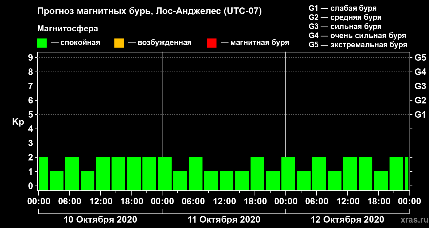 Прогноз магнитных бурь в Лос-Анджелесе — 10 октября 2020 года