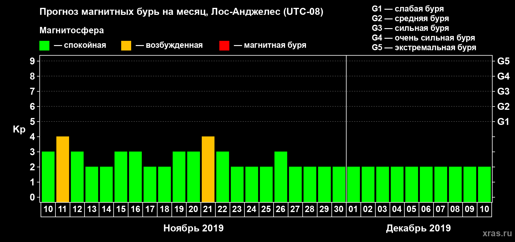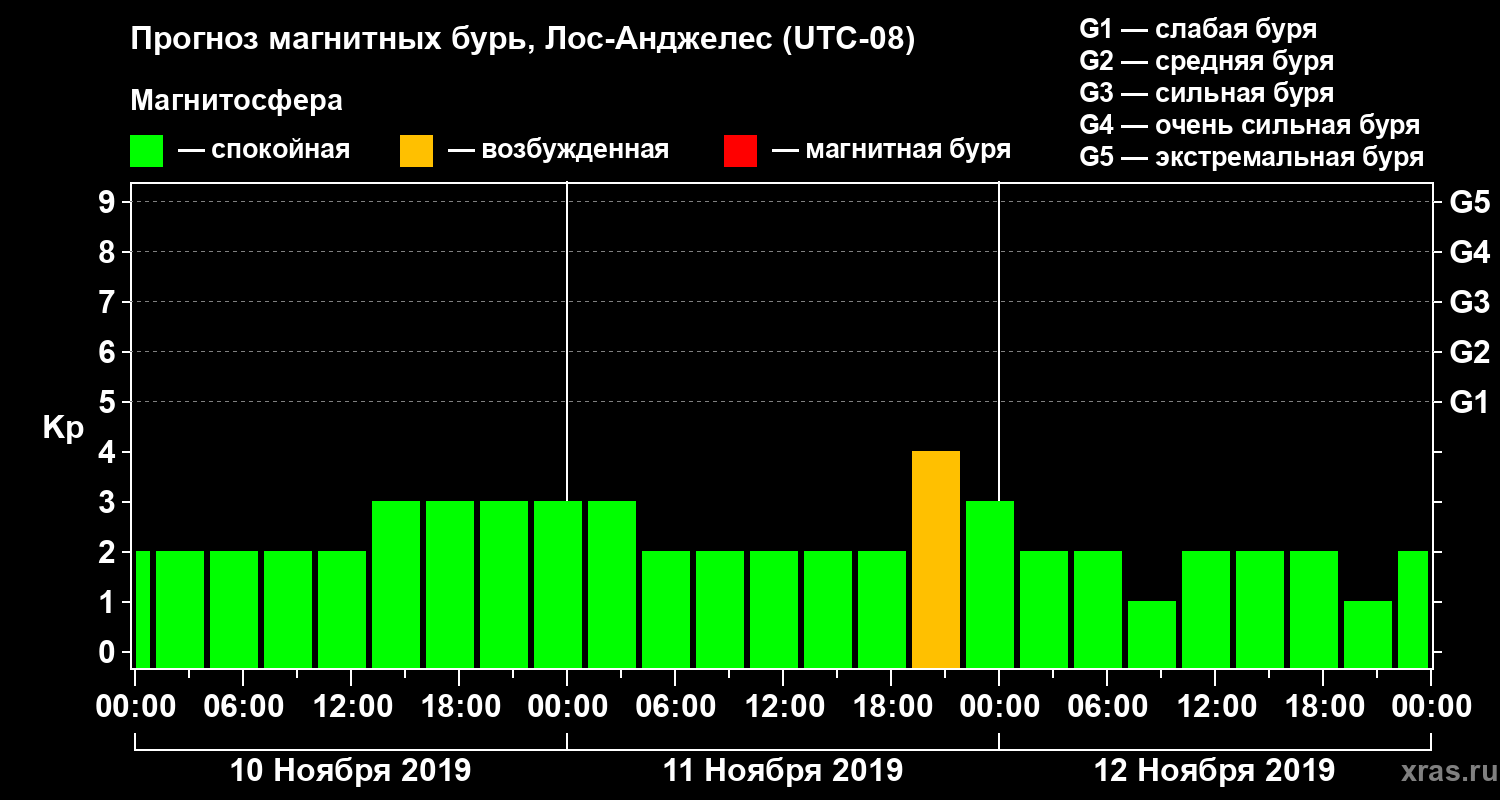 Прогноз магнитных бурь в Лос-Анджелесе — 10 ноября 2019 года