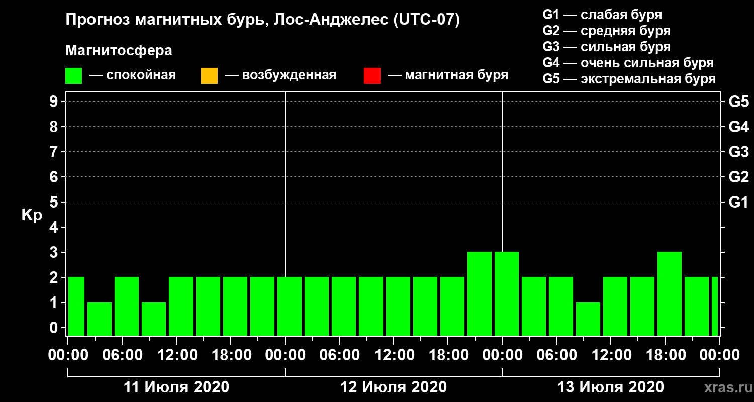 Прогноз магнитных бурь в Лос-Анджелесе — 11 июля 2020 года