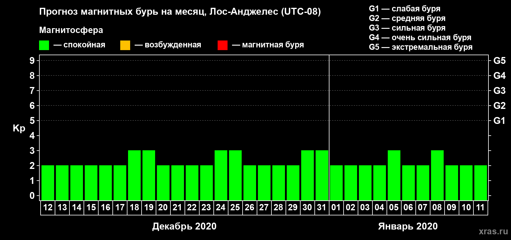 Прогноз магнитных бурь в Лос-Анджелесе — 12 декабря 2019 года