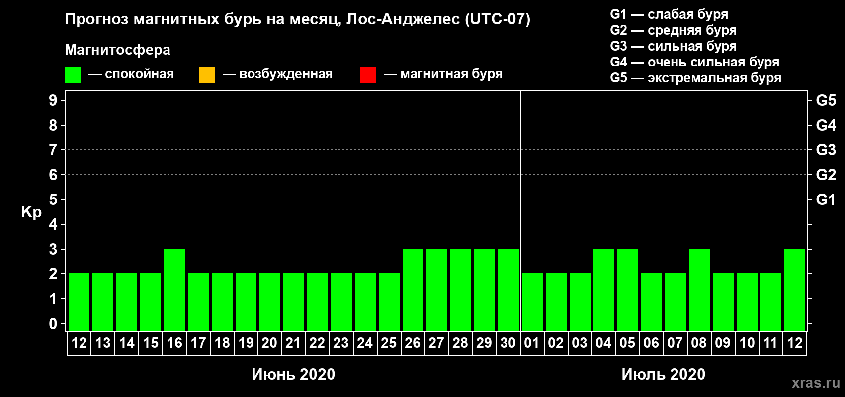 Прогноз магнитных бурь в Лос-Анджелесе на 12 июня 2020 года