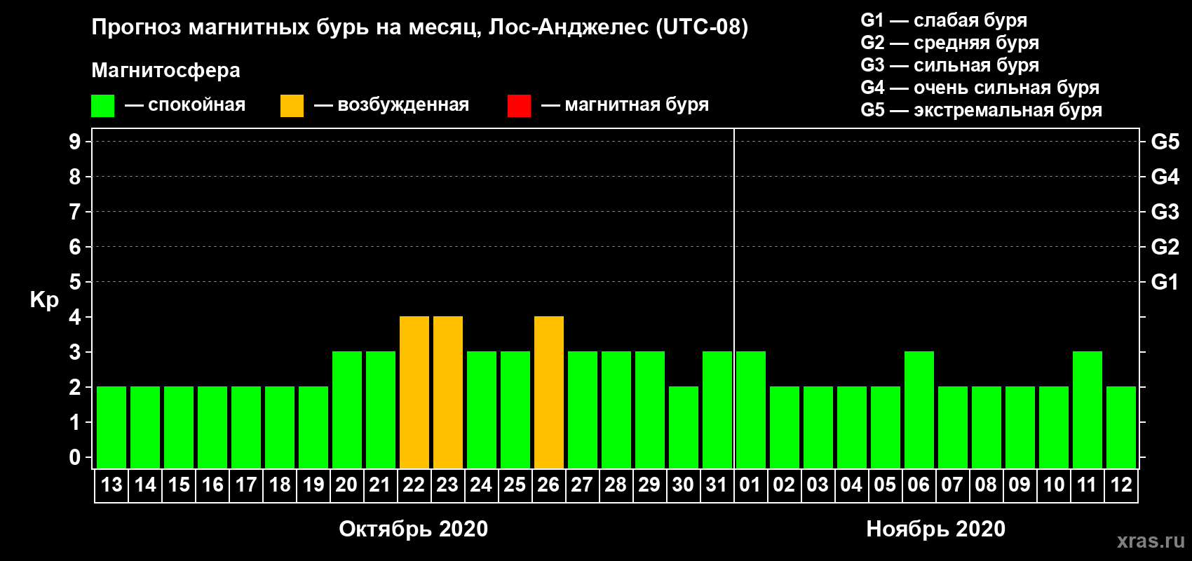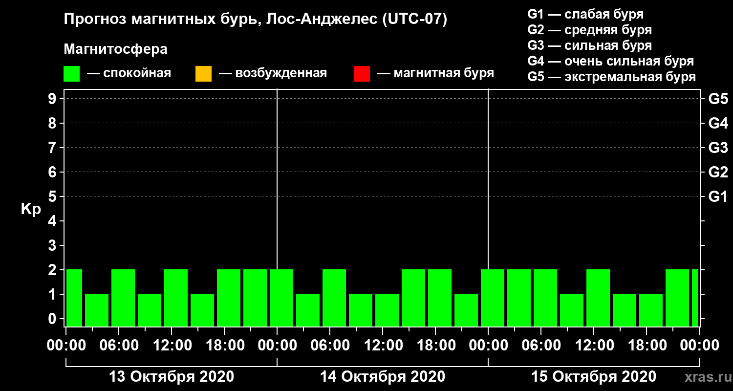 Прогноз магнитных бурь в Лос-Анджелесе — 13 октября 2020 года