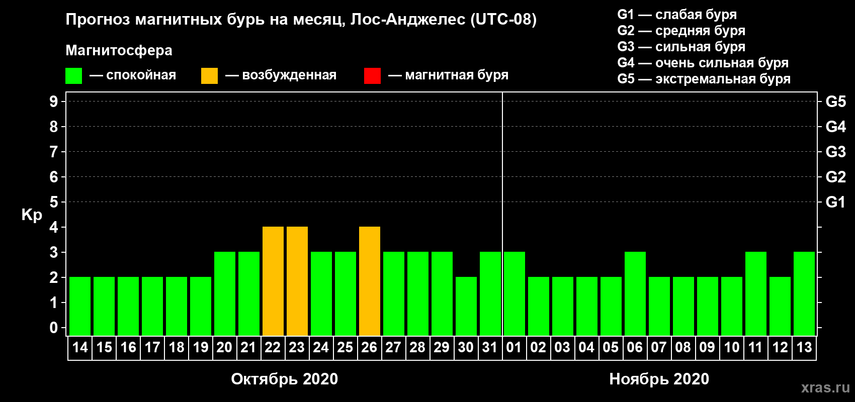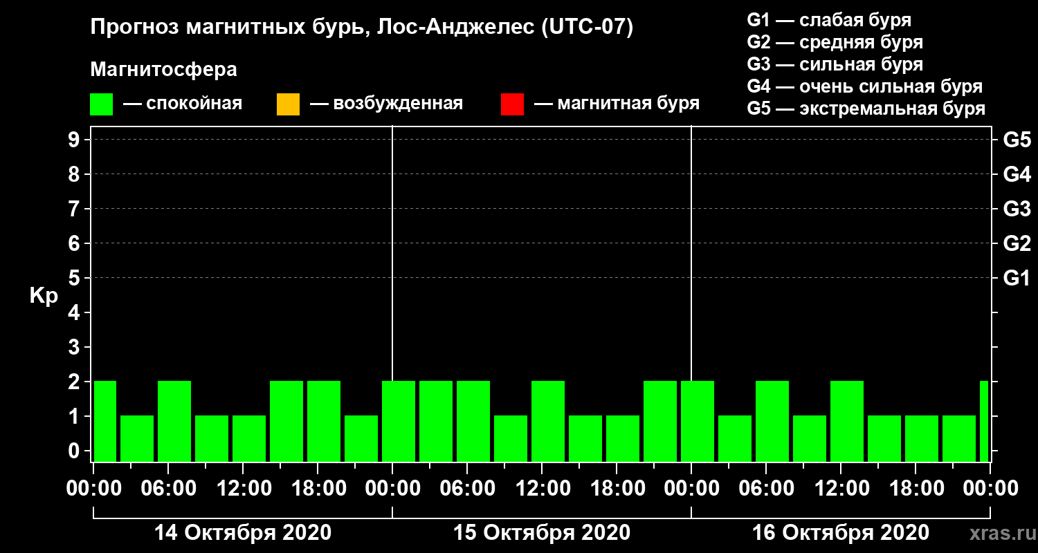 Прогноз магнитных бурь в Лос-Анджелесе — 14 октября 2020 года