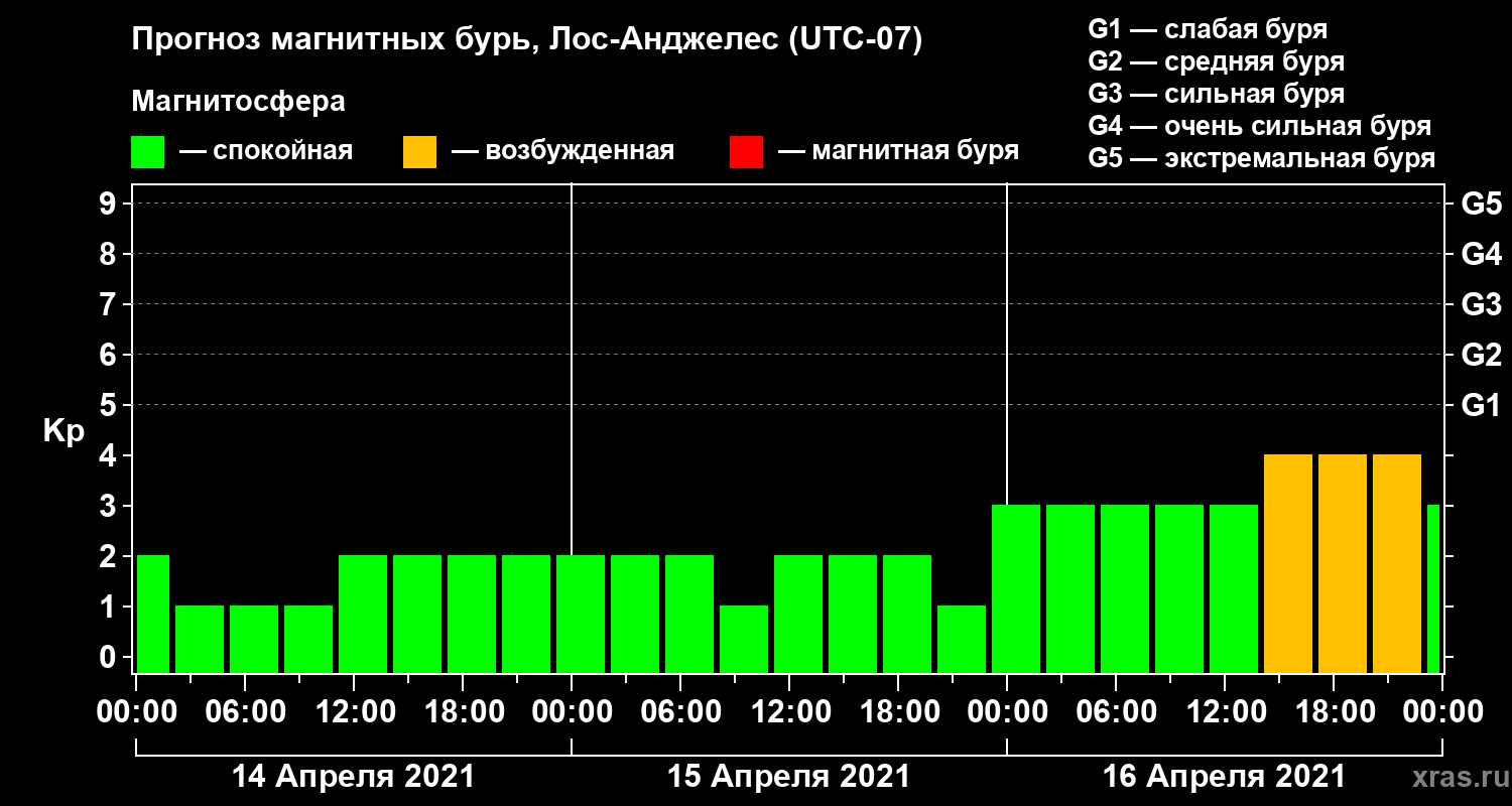 Прогноз магнитных бурь в Лос-Анджелесе — 14 апреля 2021 года
