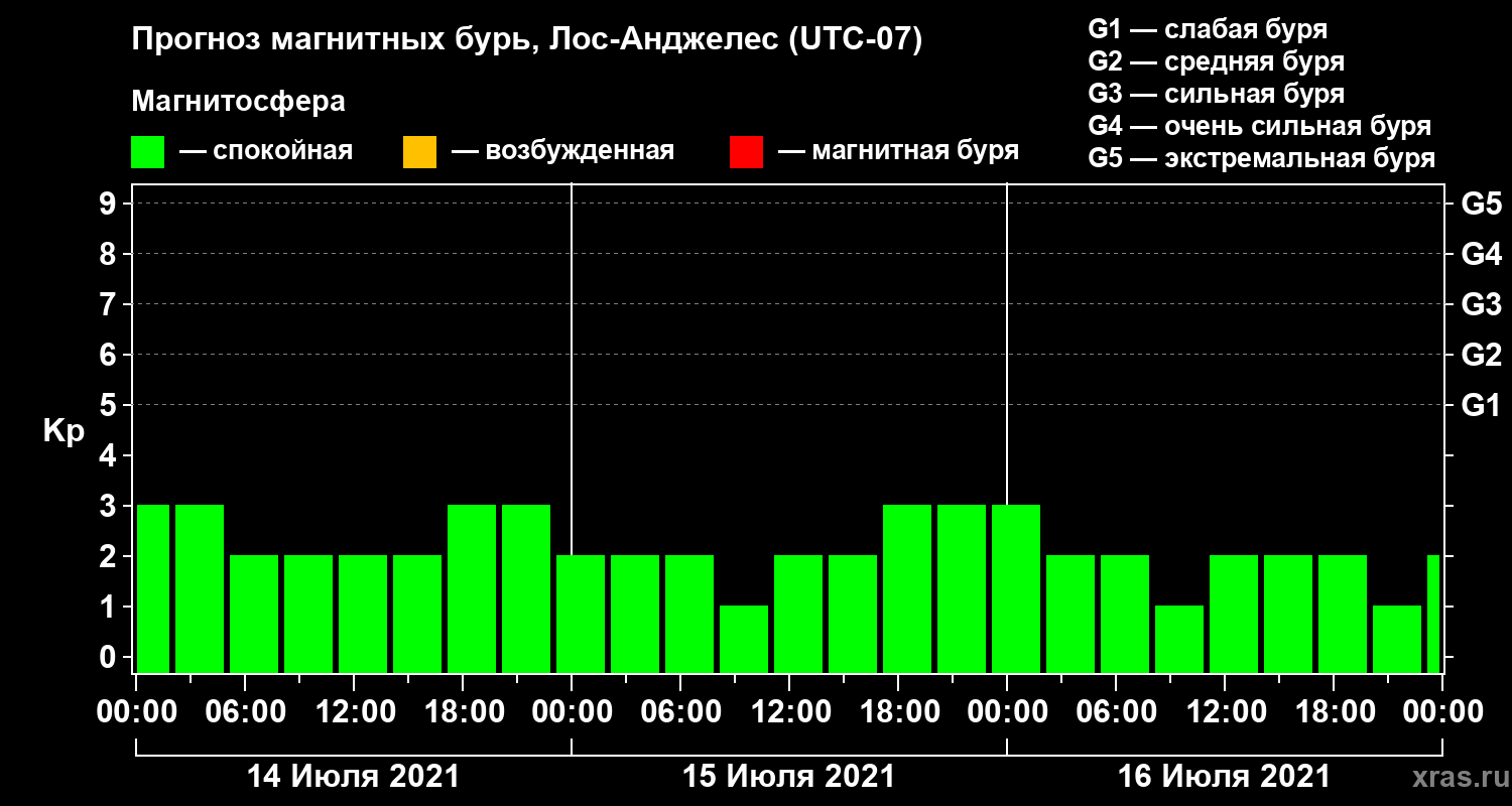 Прогноз магнитных бурь в Лос-Анджелесе — 14 июля 2021 года