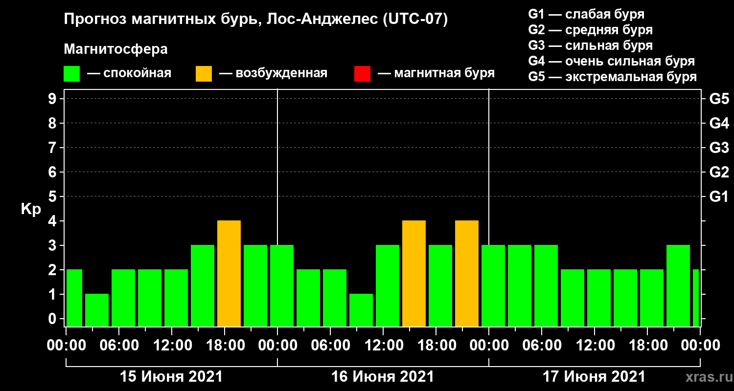 Прогноз магнитных бурь в Лос-Анджелесе — 15 июня 2021 года