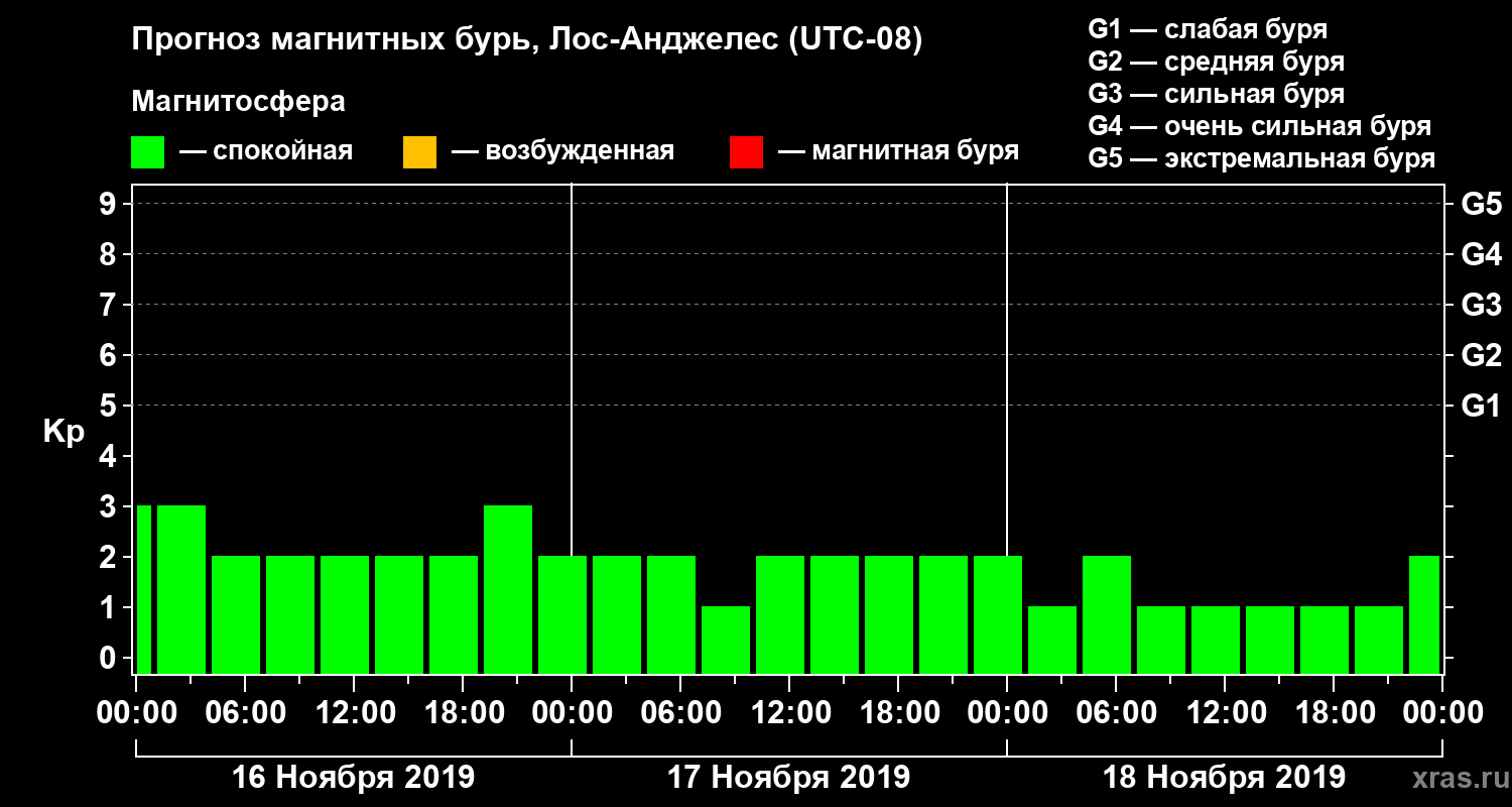 Прогноз магнитных бурь в Лос-Анджелесе — 16 ноября 2019 года