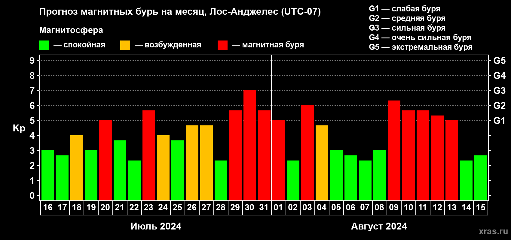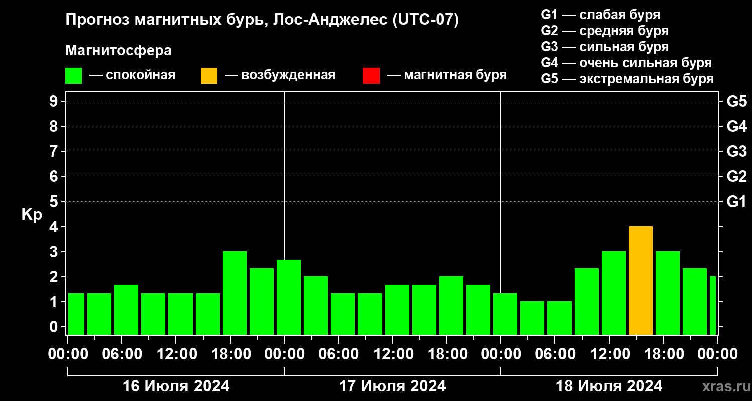 Прогноз магнитных бурь в Лос-Анджелесе — 16 июля 2024 года