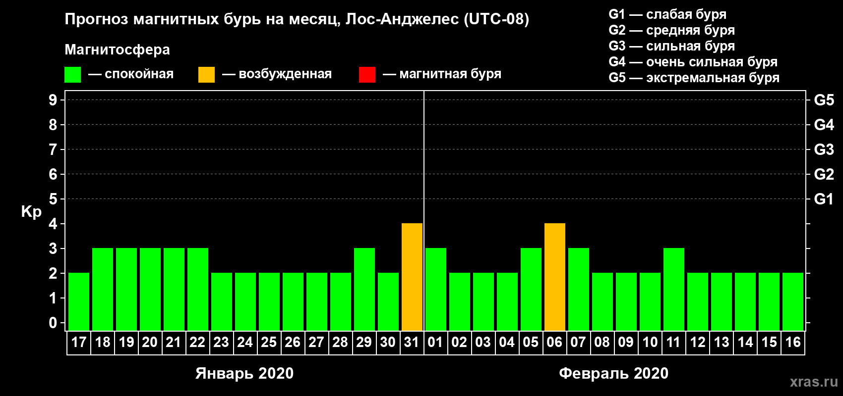 Прогноз магнитных бурь в Лос-Анджелесе — 17 января 2020 года