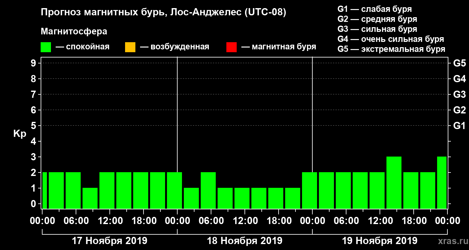 Прогноз магнитных бурь в Лос-Анджелесе — 17 ноября 2019 года