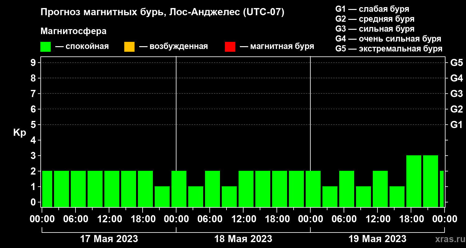 Прогноз магнитных бурь в Лос-Анджелесе — 17 мая 2023 года