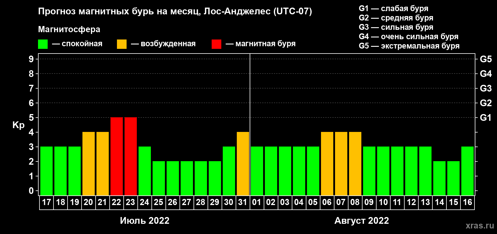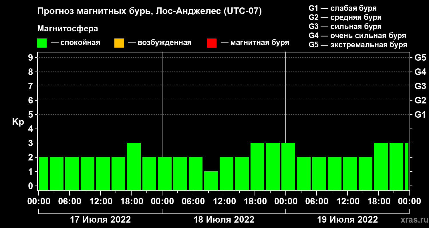 Прогноз магнитных бурь в Лос-Анджелесе — 17 июля 2022 года