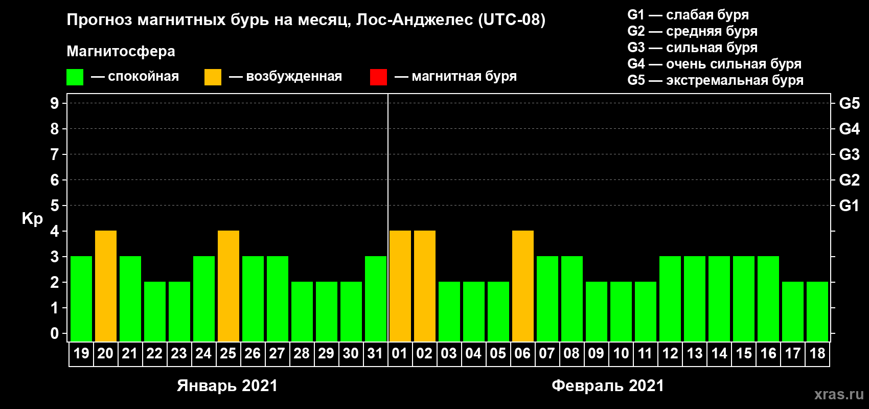 Прогноз магнитных бурь в Лос-Анджелесе — 19 января 2021 года
