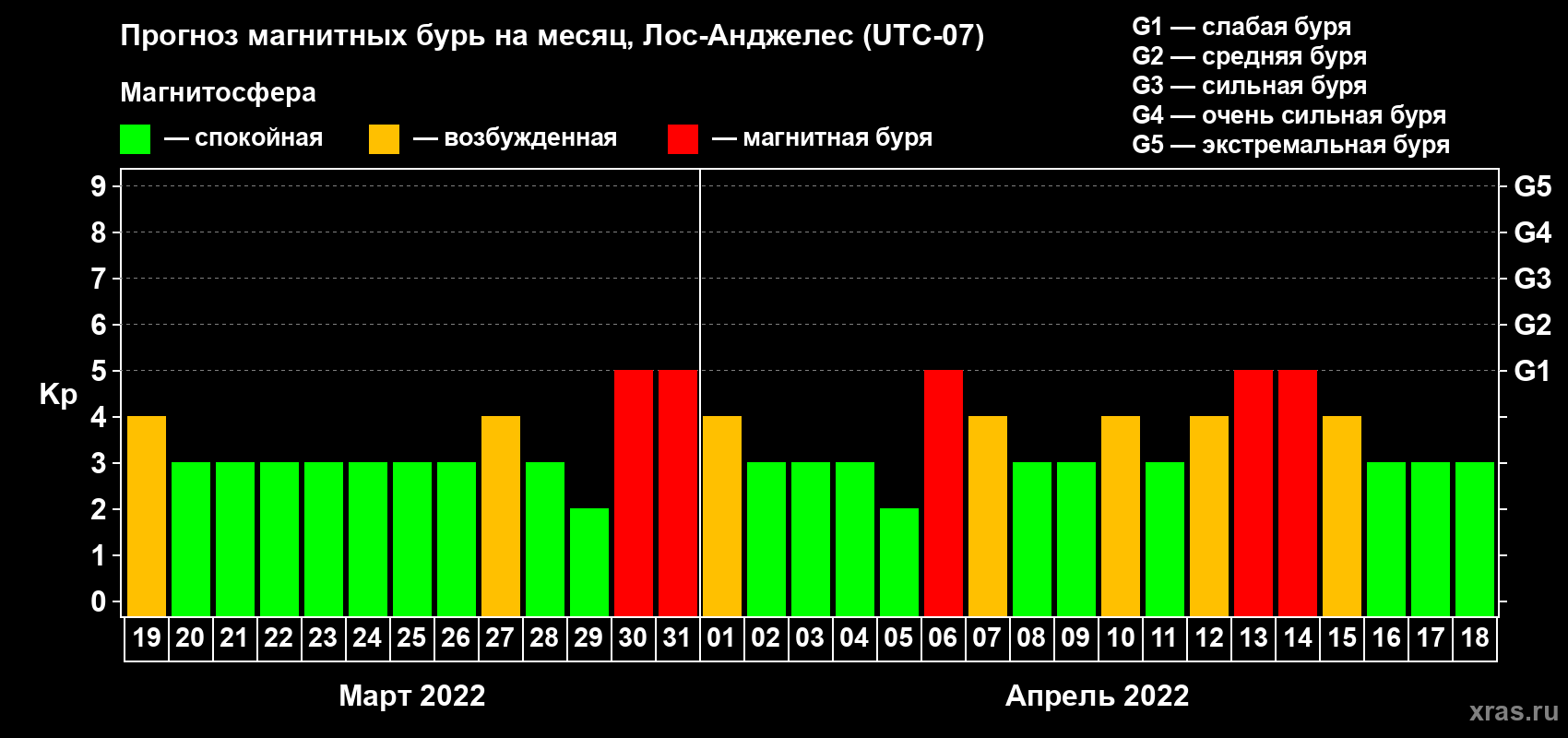 Прогноз магнитных бурь в Лос-Анджелесе — 19 марта 2022 года