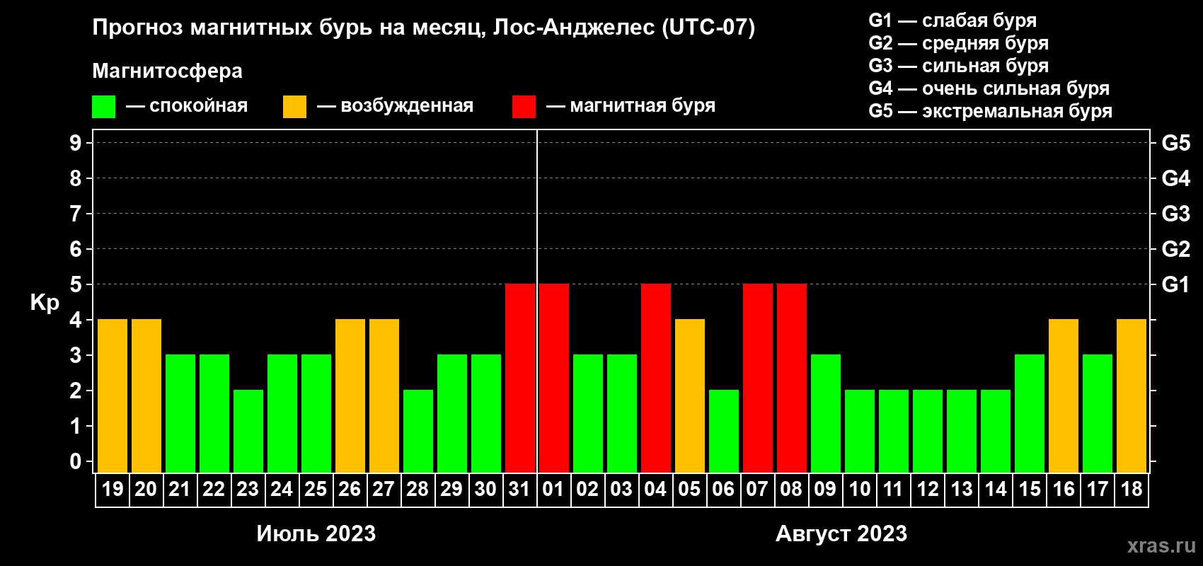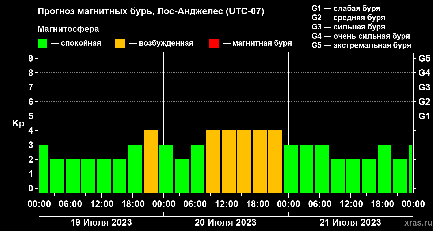 Прогноз магнитных бурь в Лос-Анджелесе — 19 июля 2023 года