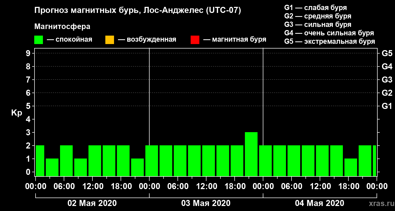 Прогноз магнитных бурь в Лос-Анджелесе — 2 мая 2020 года