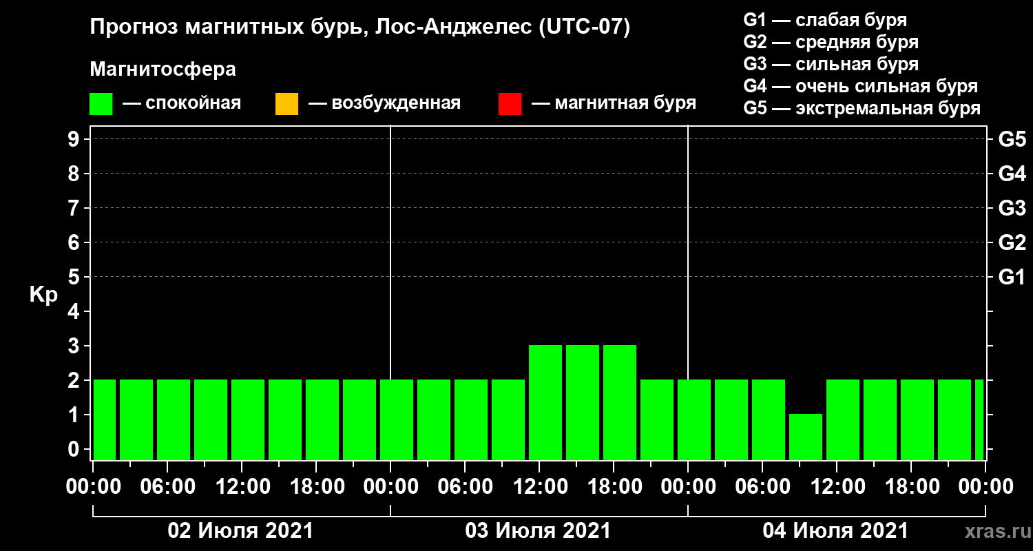 Прогноз магнитных бурь в Лос-Анджелесе на 2 июля 2021 года