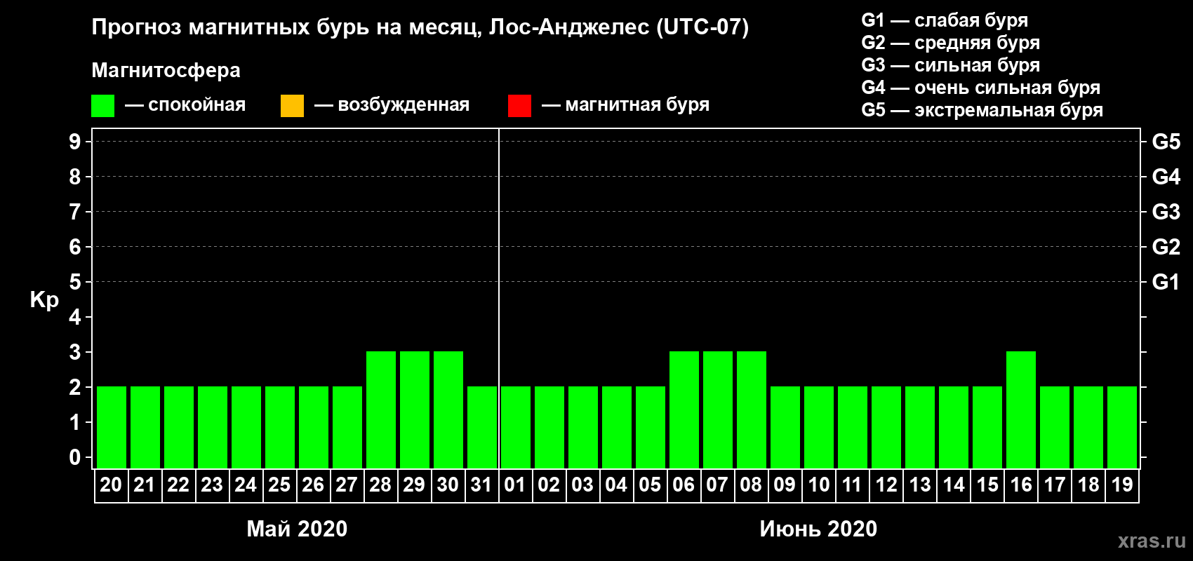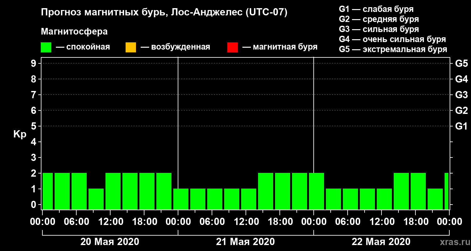 Прогноз магнитных бурь в Лос-Анджелесе — 20 мая 2020 года