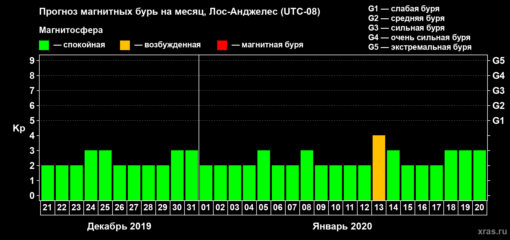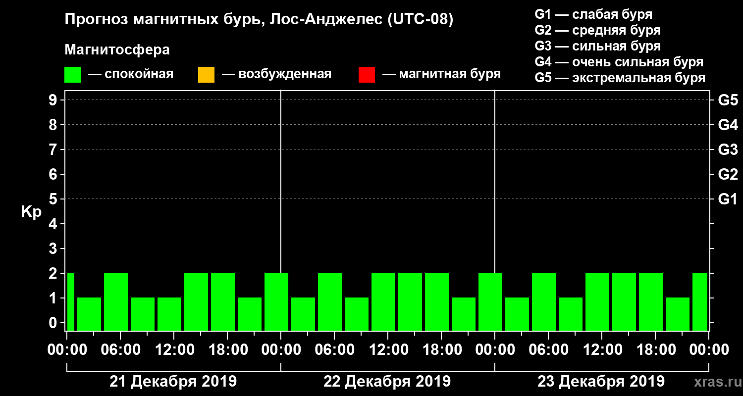 Прогноз магнитных бурь в Лос-Анджелесе — 21 декабря 2019 года
