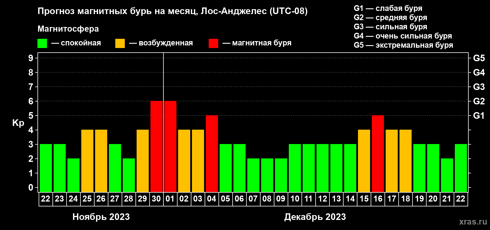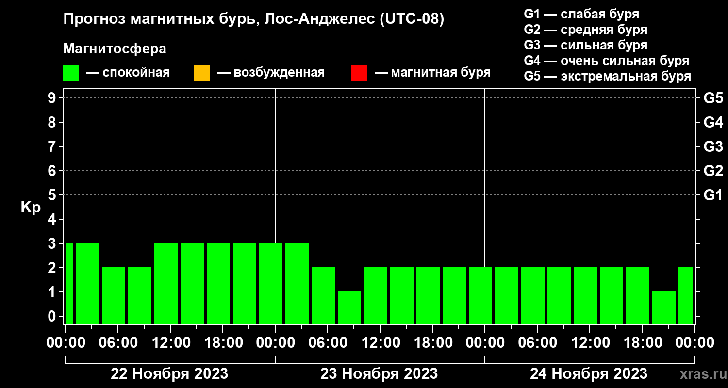 Прогноз магнитных бурь в Лос-Анджелесе — 22 ноября 2023 года