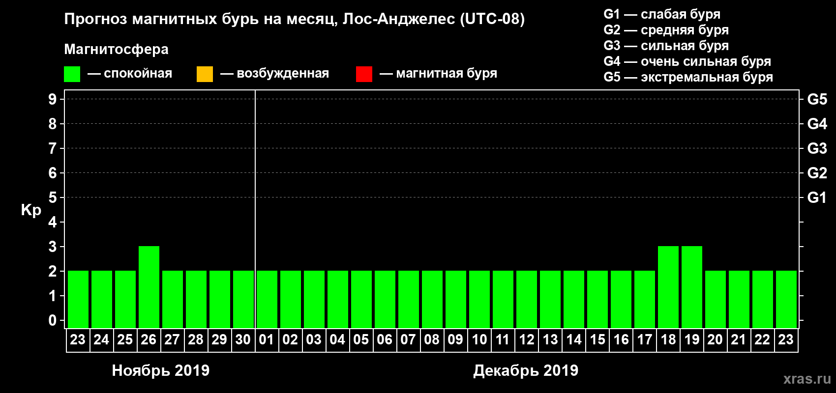 Прогноз магнитных бурь в Лос-Анджелесе — 23 ноября 2019 года