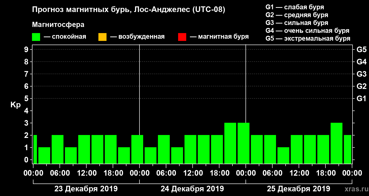Прогноз магнитных бурь в Лос-Анджелесе — 23 декабря 2019 года