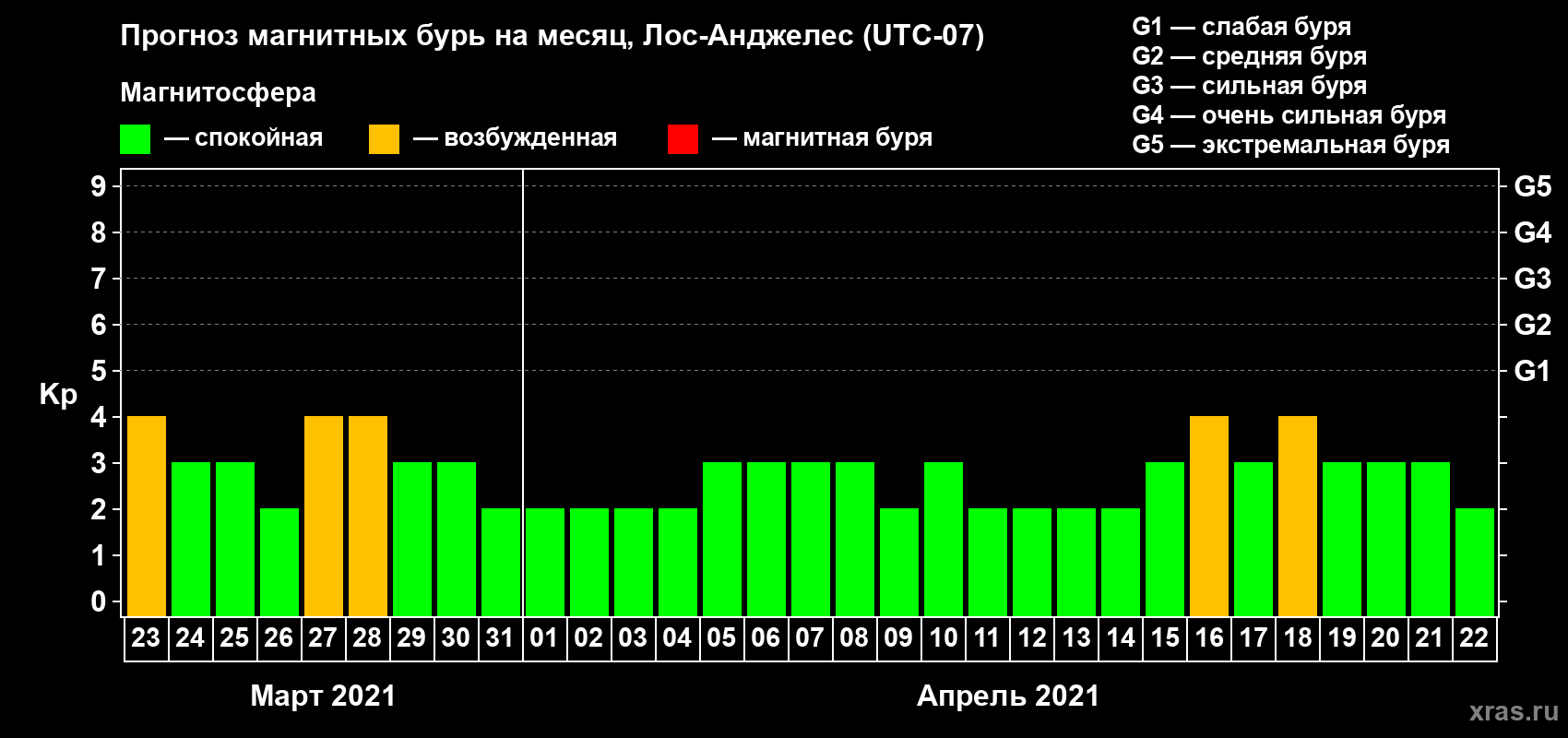 Прогноз магнитных бурь в Лос-Анджелесе — 23 марта 2021 года