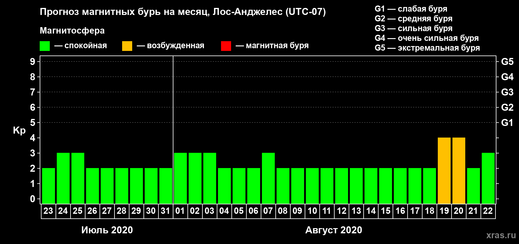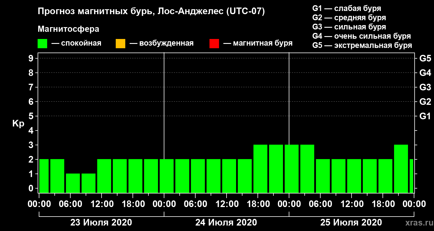 Прогноз магнитных бурь в Лос-Анджелесе — 23 июля 2020 года