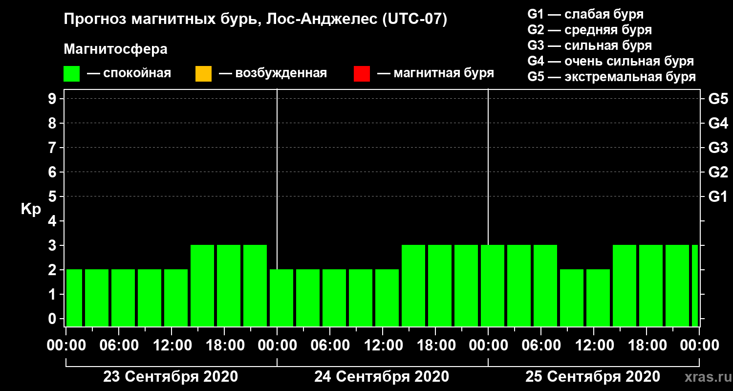 Прогноз магнитных бурь в Лос-Анджелесе — 23 сентября 2020 года