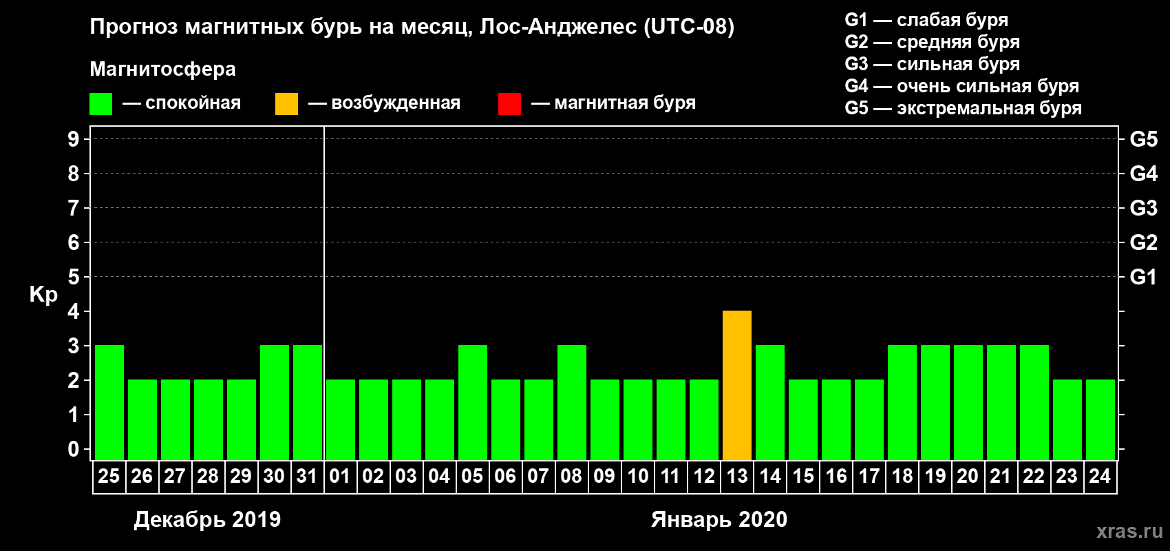 Прогноз магнитных бурь в Лос-Анджелесе — 25 декабря 2019 года